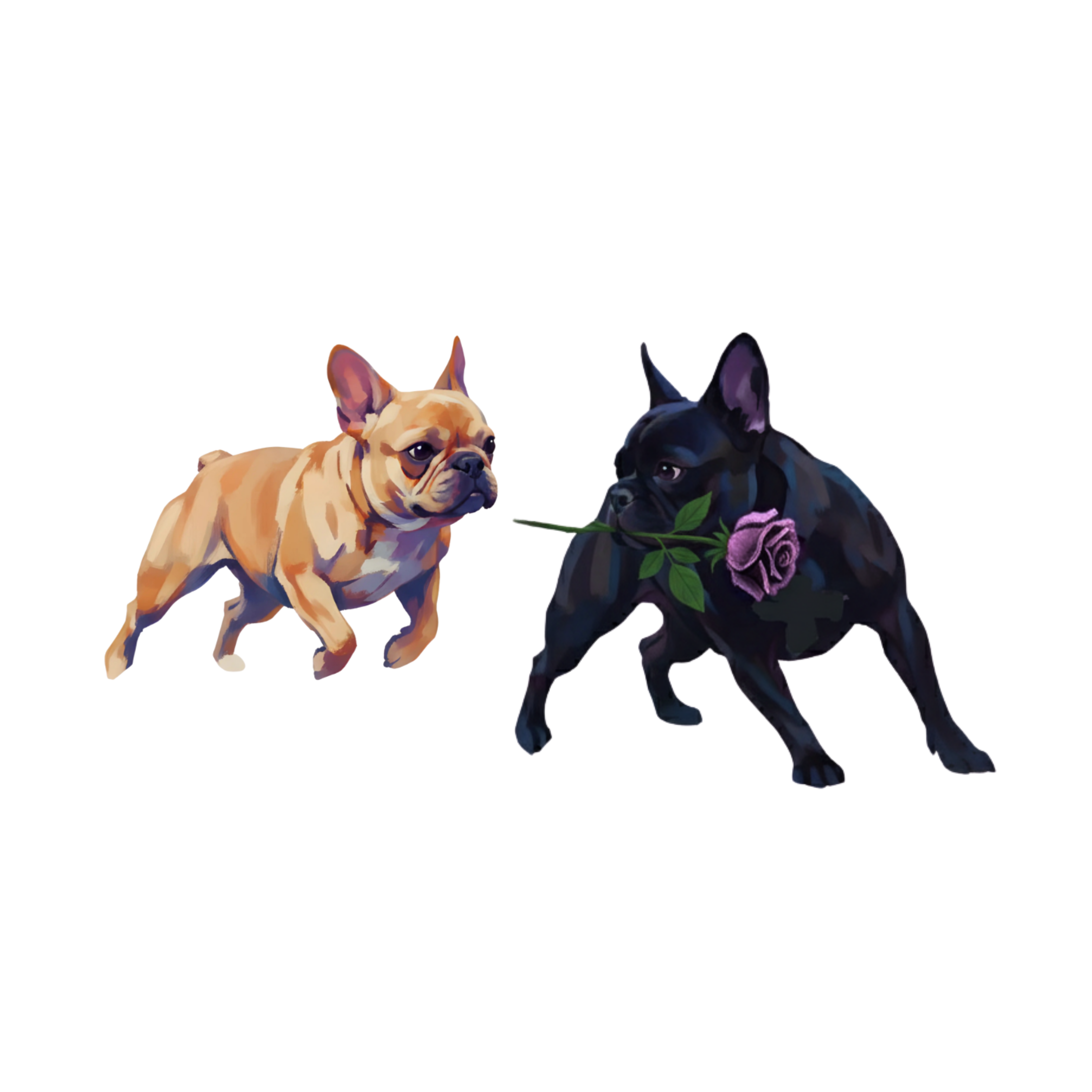 Our name, The Floral Frenchie, is deeply personal - a heartfelt tribute to two beloved French bulldogs, Max and Maya.